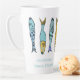 El azul y el amarillo de los peces en la decoración azul. Excelentes tazas para casa de playa o casa de lago. Trae como regalo cuando te inviten a pasar el fin de semana. Personalízalo primero. Haga clic en el botón Personalizar para ver lo fácil que es. Gracias por ir de compras a zazzle.com/windydesign, sede de Arte Original y Tarjetas y Regalos Internacionales en Zazzle.
