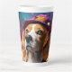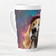 Un Beagle juguetón vestido con un disfraz vibrante y caprichoso contra un telón de fondo brillante y mágico. Este encantador diseño es perfecto para los amantes de los animales.