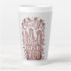 Diseño moderno y divertido de arte de palabras dibujado a mano incluye texto de "bebe café y come pastel" con gráficos coordinados en fondo gris claro