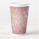 Este gráfico abstracto, está diseñado con pétalos florales, resaltado en hojas de oro blancas y doradas, contra un rosa, y fuschia, con motivos de fondo en un entorno vintage.