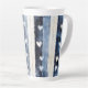 Taza De Café Latte Blue White Denim Hearts Stripes Cumpleaños