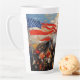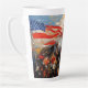 Un caballo corre con una bandera de los Estados Unidos al fondo.
