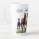 Una hermosa foto de caballos en un prado en una taza de café con leche.