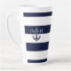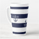 Taza De Café Latte Café monograma costero con ancla azul de la marina
