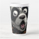 This explosive and dynamic illustration captures the moment a panda experiences an intense caffeine rush. With wild, wide-open eyes and a shocked expression, the panda bursts forth from a sea of coffee beans. The graphic, comic-book art style, complete with energetic lines radiating in the background, perfectly conveys a sense of chaotic, coffee-fueled energy. This isn't your typical calm panda; this is panda-monium in a coffee cup!