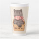 Fluffy grey cat sitting comfortably inside a cardboard box. The txt "If fits, sits" is expressing the cat's innate behavioral rule.