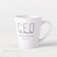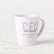 Un CEO latte mug con su nombre, el nombre de su empresa y su fecha de establecimiento. El diseño está decorado en tonos grises y negros. Simplemente agrega tu información, agrega esta taza a tu carrito, y bebe tu café como el jefe que eres. Diseño de Latte Mug Holiday CEO de Gray Black Name | ©Melissa Patton - Diseñador