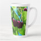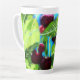 Taza De Café Latte Cerezas Colgadas De Las Ramas Cerezo Verde Rojo