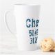El diseño de latte mug presenta coordenadas de latitud y longitud para Chernihiv, Ucrania con fuente azul oscuro angustiado . Chernihiv se encuentra en el norte de Ucrania y se le ha apodado "La ciudad de las leyendas".