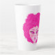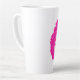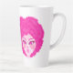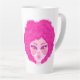 Taza de café latte, de hermosa chica con cabello crespo rosa