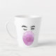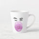 Taza De Café Latte Chicle Rosa Burbuja siendo Soplado por una Mujer