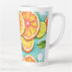 This large latte mug showcases a vibrant citrus design featuring juicy slices of orange, lemon, and lime illustrated in a lively, modern style. Set against a bright teal background with dynamic splash accents and fresh green leaves, the artwork creates an energizing, refreshing look that brightens every morning ritual. With its tall, elegant shape and generous capacity, this mug is perfect for lattes, cappuccinos, tea, cocoa, or cozy evening drinks. Durable, glossy, and full of personality, it brings a burst of color to daily routines and makes a cheerful, memorable gift for fruit lovers and fans of uplifting design.