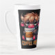 A funny and sarcastic design showcases a cute highland cow holding a to-go coffee cup brimming with coffee. With big blue eyes and a sleepy, tired expression, the cow rests its head on the cup's lid, its fluffy black fur adding to the charm. The colorful text reads, "Coffee first." This playful design is available on a wide variety of products, making perfect gifts for coffee lovers.