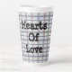 Corazones de amor es un diseño divertido y caprichoso que seguro captará el corazón de cualquiera. Este diseño artesanal se compone de rayas rosas sobre un abstracto de corazones y flores y rayas azules y blancas a través de la taza de leche, ¡todo con un motivo azul y blanco!