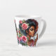 Taza De Café Latte Dama con rosas rosas rosas rosadas bebiendo