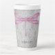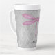 Disfrute de su café de café con leche o de la mañana con una magenta mosca Dragónica Damask personalizada Latte Mug. El diseño de la taza presenta una libélula colorida contra un elegante patrón de damasco gris vintage. Artículos de regalo adicionales disponibles con este diseño así como una variedad de colores.