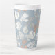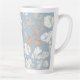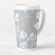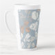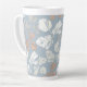 Taza De Café Latte Delicadas ramas con hojas en azul.