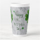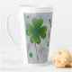 Disfrute de su café matutino o café recién hecho con una fiesta Shamrock St. Patrick's Day Latte Mug. Latte mug design presenta coloridos tréboles de cuatro hojas con el saludo "Happy St. Patrick's Day" contra un fondo de mármol gris. Elementos adicionales disponibles con este diseño.