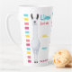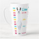 Divertido gracioso tema "Llama Sólo Di" canto a rayas y colorido clavo de llama. Coloridos caramelos a rayas, adorables rozamientos de llama personalizado, tazón de felicidad. ¡Para todos los amantes del café y de los teotalers! ¡Una taza linda y alta de "Fru" divertido sólo para ti!