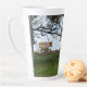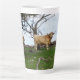 Taza De Café Latte Dos vacas de altiplano en tierras rurales pacífica