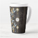 Taza De Café Latte Dragoniscos de Steampunk sobre fondo rayado marrón