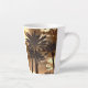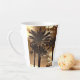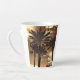 Un espectacular sepia diseñado Latte Mug de palmeras altas. Los colores texturados de los marrones, los dorados y el negro te harán sentir cálido y mareado mientras tomas tu café con leche, pero te mantendrán en una mente tropical.
