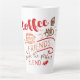 Esta gran taza de café con café con café es un regalo perfecto para los amantes del café o para los amigos. La tipografía está escrita con colores cálidos y acogedores de rojo, naranja y marrón y dice "Café y amigos hacen la mezcla perfecta". El diseño se ha terminado con dibujos en línea que incluyen una taza de café y un delicioso quequito. Este bonito diseño también está disponible en la pequeña taza de café con leche y en nuestra tienda se pueden encontrar diseños alternativos.