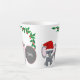 Esta taza de café con leche presenta un hermoso y adorable ilustracion de elefante bebé adorable con Navidades con hojas verdes y llenas de Navidades y un gorra rojo con el nombre personalizado del niño. Es un hermoso y lindo regalo único para tu hijo o familia y amigos que aman los animales lindos y el elefante bebé. Puede cambiar el texto y el color o eliminarlo haciendo clic en las herramientas de personalización