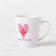 Este capricho latte mug es un regalo personalizado único para darle a tu enfermera favorita con un corazón rosado con un patrón de rojo en el centro y otro corazón más pequeño con un patrón de fondo de corazones rosados. Personaliza con un nombre. Diseñado por la artista de renombre mundial ©Tim Coffey.