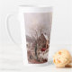 Hermoso arte ventilado Americana vintage de Durrie de una escena de invierno con animales de granja en un patio de granero con estanque de pato, casa de campo y granero en la nieve está en este Latte Mug. La imagen es de dominio público debido a que caduca el copyright.
