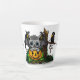 Taza De Café Latte Esperando Halloween , Cute Bat y Raven