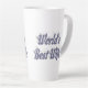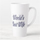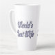 Latte mug con la mejor esposa del mundo en un texto azul-gris 3D. Mug disponible en varios estilos y colores.