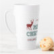 Un alegre y rústico diseño de jarra de latte en rojo oscuro y verde salvia con acentos de ciervo y árbol de Navidad. El texto dice 'Feliz Navidad y Feliz Año Nuevo' con una plantilla para que usted agregue el año actual. Busque ID612 para ver otros productos con este diseño.