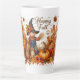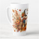Taza De Café Latte Feliz otoño, escarecrow y follaje otoñal