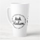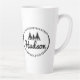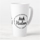Este sencillo pero eficaz diseño de latte mug, presenta una línea de abetos gráficos sobre tu nombre en texto de guión y tu dirección u otro texto en un entorno ovalado. Perfecto para un artículo promocional de la empresa o crear un conjunto completo como un hermoso regalo de la casa. Busque ID304 para ver productos adicionales con este diseño.