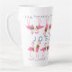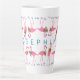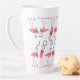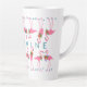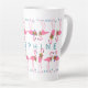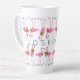 Flamingos tropicales alta taza para una cocina temática costera. Los flamencos rosados se encuentran entre las pequeñas estrellas azules, con una fila en la parte inferior y la otra boca abajo en la parte superior. Si eliges el tamaño más pequeño de la taza, la estrella de mar se cortará.