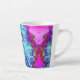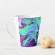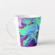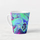 Taza De Café Latte Flor de hibiscus verde y azul psicodélico retro