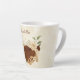 Hermosa taza de latte de otoño en tono tierra con flores de terracota, beige y crema con hojas verdes .