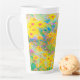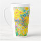 Taza De Café Latte Flores amarillas y rojas bonito con azul turquesa