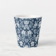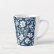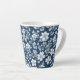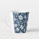 Un patrón sencillo y elegante sin costuras con flores blancas con hojas azules sobre un fondo azul oscuro.