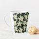 Taza De Café Latte Flores blancas sin costuras trópicas hoja verde