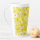 Taza De Café Latte Flores de mod retro amarillas y blancas