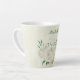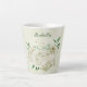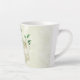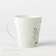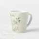 Hermosa taza romántica de latte con flores blancas marfil y algunas hojas verdes bonitas .