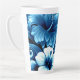 Taza De Café Latte Flores tropicales hawaianas Patrón azul Hibiscus