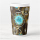 Taza De Café Latte Fondo de roscas de vapor con lentes turquesas