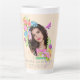 Taza De Café Latte Foto Beige de monograma floral de cinta de coser