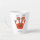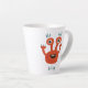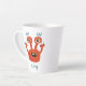 Mugre de latte personalizado con un ilustracion vectorial de un personaje de caricatura de color naranja con uñas y pestañas azules sonriendo alegremente mostrando sus dientes y un nombre personalizable.