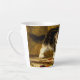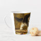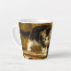 Latte Mug presenta la pintura al óleo de Henriëtte Ronner-Knip El joven artista (1821-1909). Un gatito blanco y negro juega con un juego de pintura y dos pinceles. Un regalo adorable para los amantes del gato y del romanticismo.