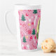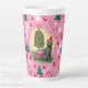 Hermoso, juguetón, alegre diseño de Navidades rosados con un ilustracion de un gato negro con un árbol de Navidad y un patrón flotando alrededor.