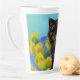 ¡Latte Mug con un gato al estilo Van Gogh con girasoles! Un gatito negro bonito cuidadosamente posa con flores amarillas. ¡Un regalo fabuloso para los amantes del gato y para los coleccionistas holandeses de arte!